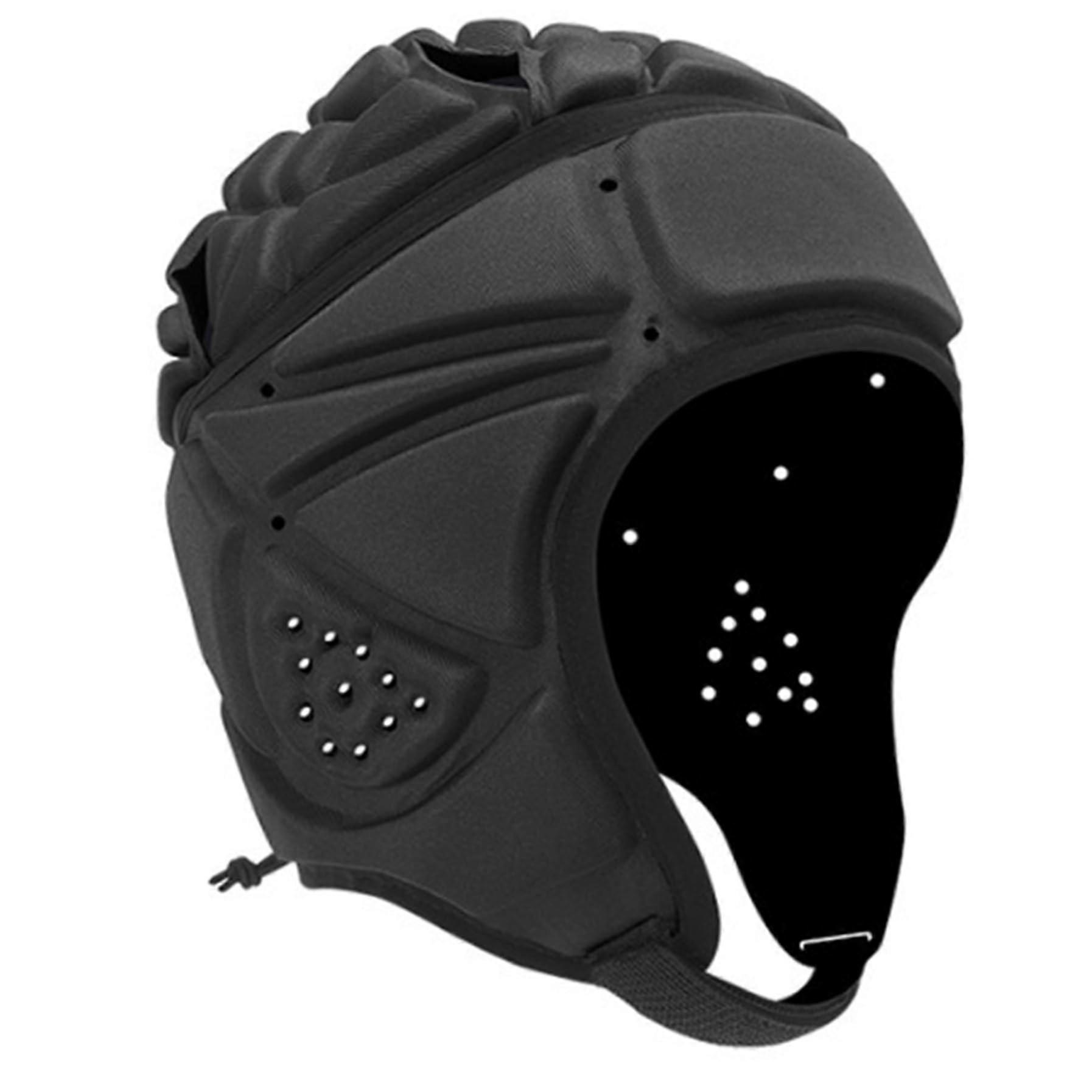 Rugby Scrum Cap Adult Adjustable Headguard with Shockproof Protection and Secure Chin Strap Black