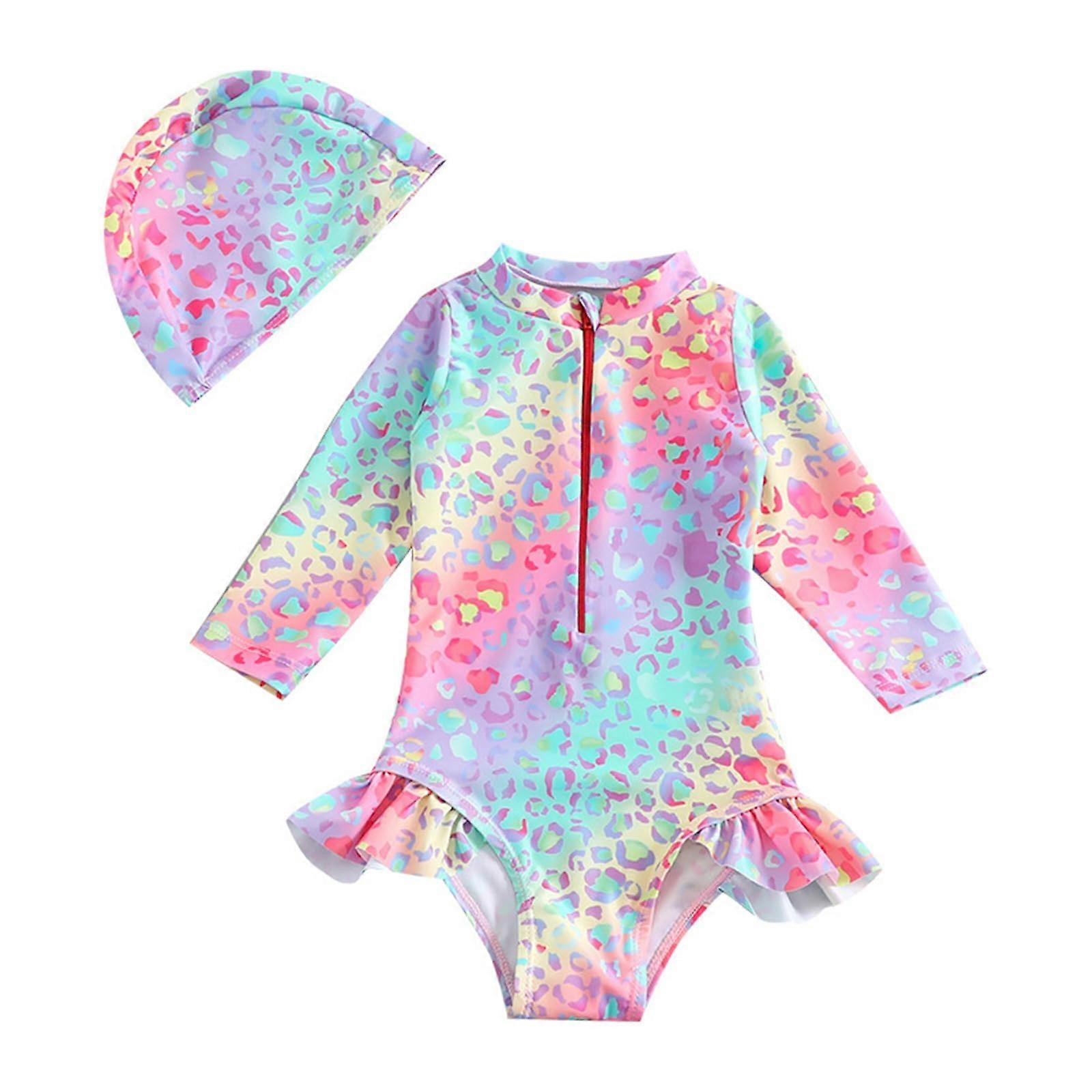 Baby Girl Long Sleeve Swimsuit UPF50+ Sun Protection Floral Ruffle Toddler Swimwear with Zipper