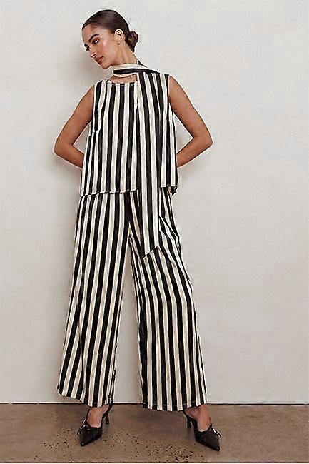 Spring And Summer Temperament Fashion Suit Women's Striped Top Casual Loose Wide-Leg Pants Two-Piece Set