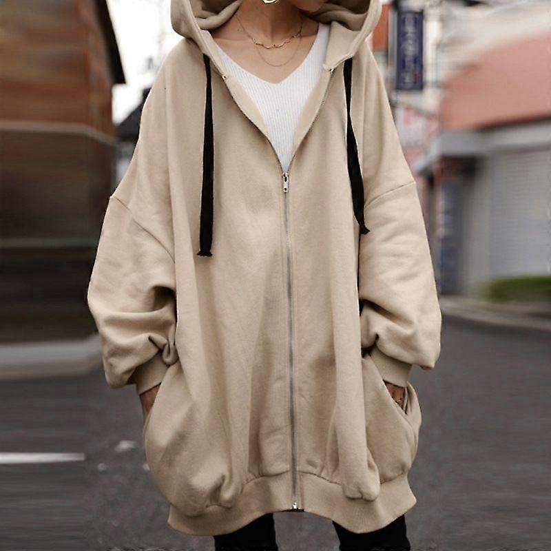A Solid Color Loose Hoodie With A Fashionable Hood And Zipper For Overseas Women's Clothing In Autumn And Winter