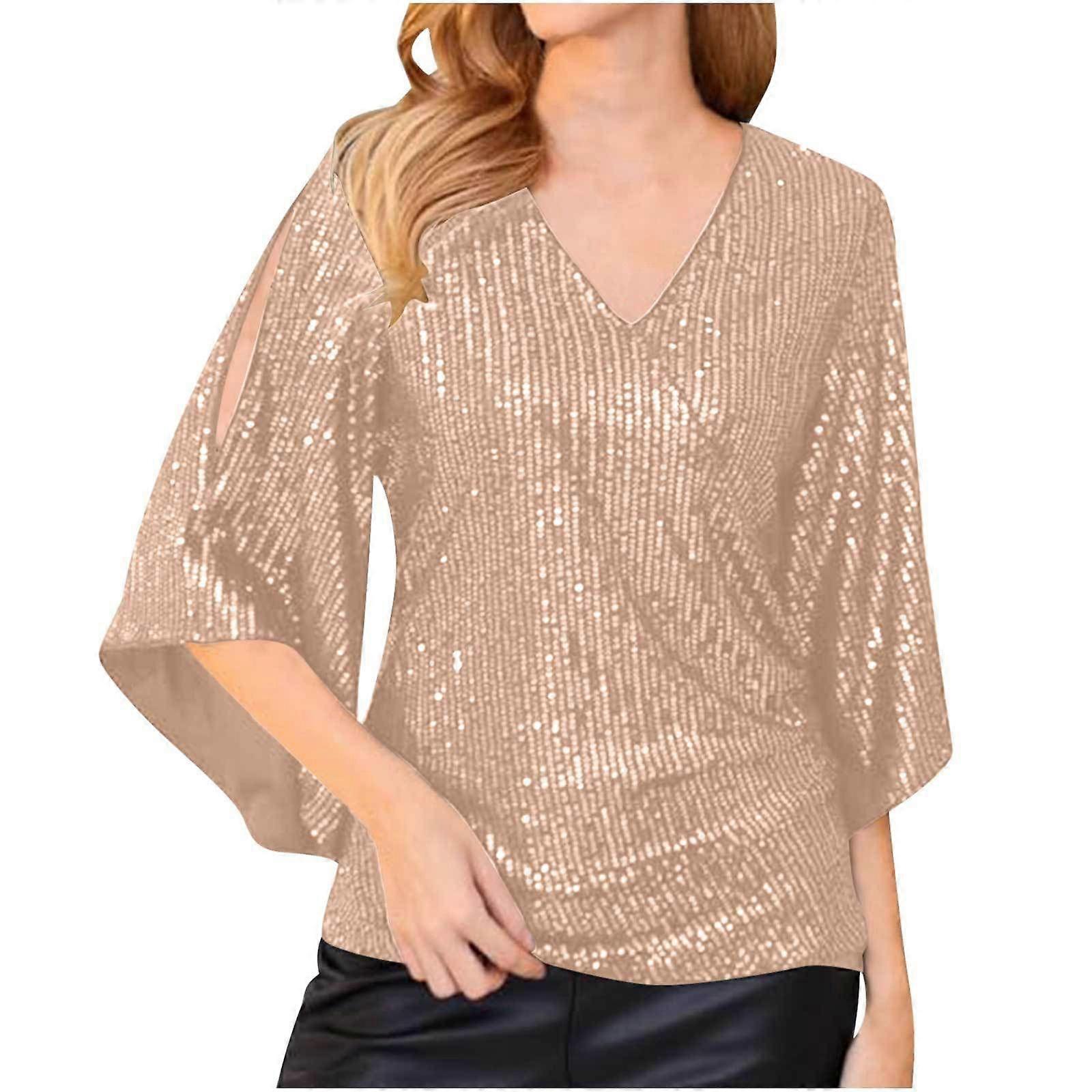 Real Photo Real Price Loose Mid-Length Sequined T-Shirt For Women With Mid-Length Sleeves ~