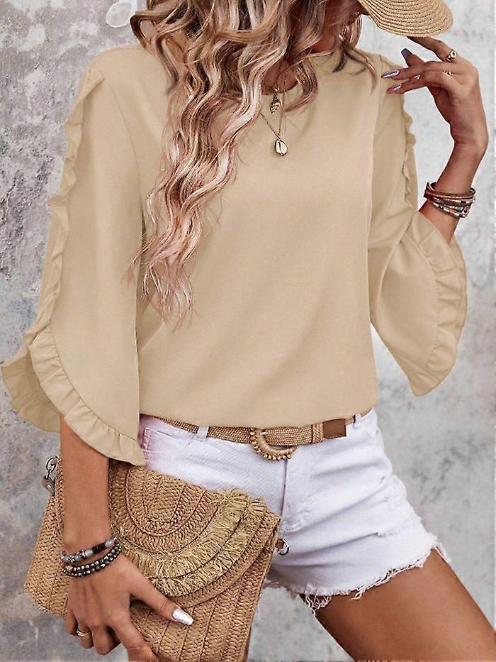 Women's Spring And Summer Round-Neck Lace Irregular Three-Quarter Sleeve Top