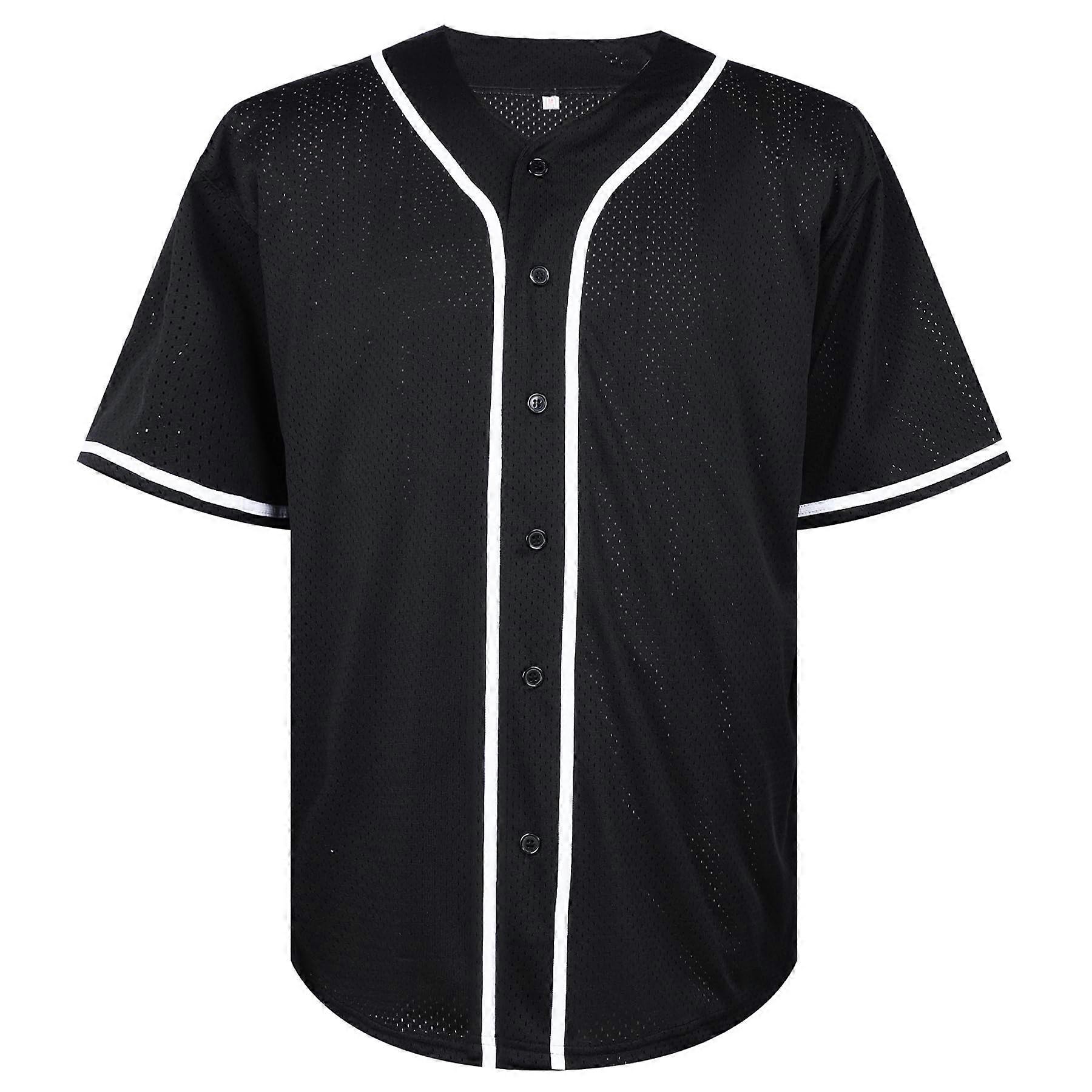 Blank Black Mesh Baseball Jersey XL Hip Hop Style, Breathable Full Button Down Sports Shirt