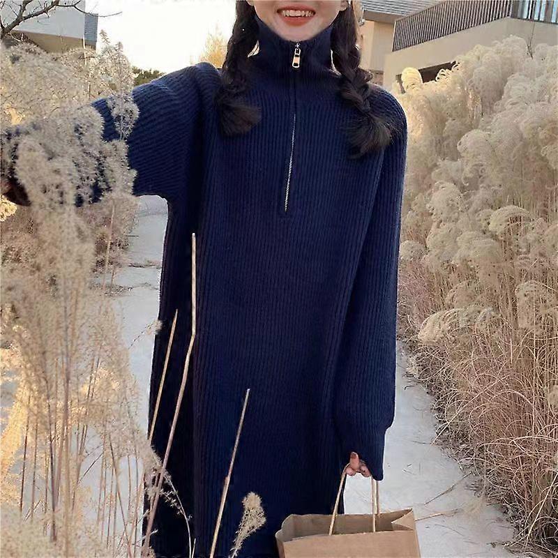 Pullover Knitted Sweater Women's Winter Zipper Thickened Korean Version Over The Knee Midi High Neck Loose Underwear Sweater Skirt