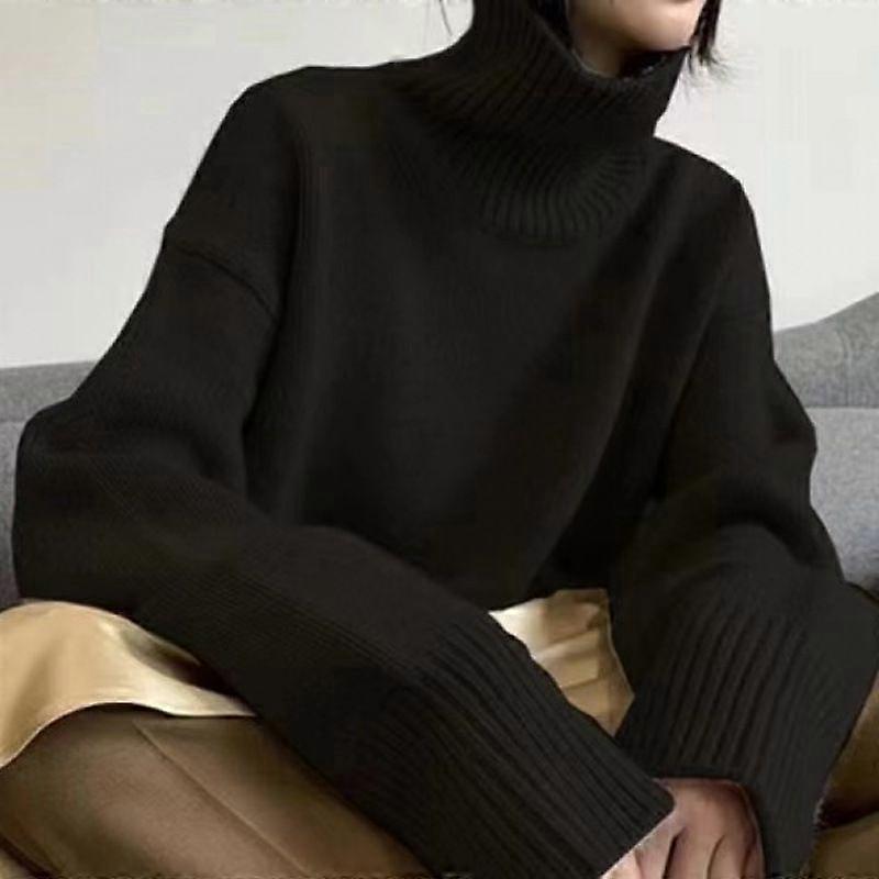 Korean-Style Women's Clothing: High-Necked Sweater With A Cozy, Relaxed Autumn/Winter Look, Made Of Soft, Plush Knit Fabric.