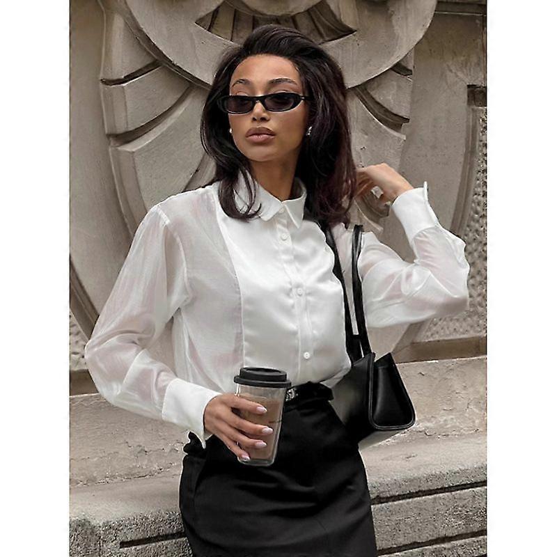 Commuter White Lapel Shirt Women's Summer Design Sense Stitching Long Sleeve Women's Shirt Women's Clothing