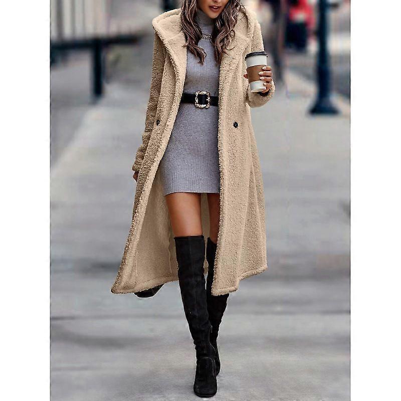Fall Winter Fashion Long Solid Color Long Sleeve Plush Hooded Jacket Women Coat Trench Coat