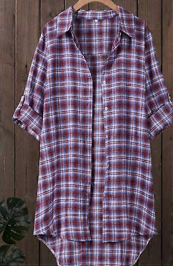 Spring Vintage Loose Long Women's Shirt Casual Slimming Plus Size Plaid Shirt