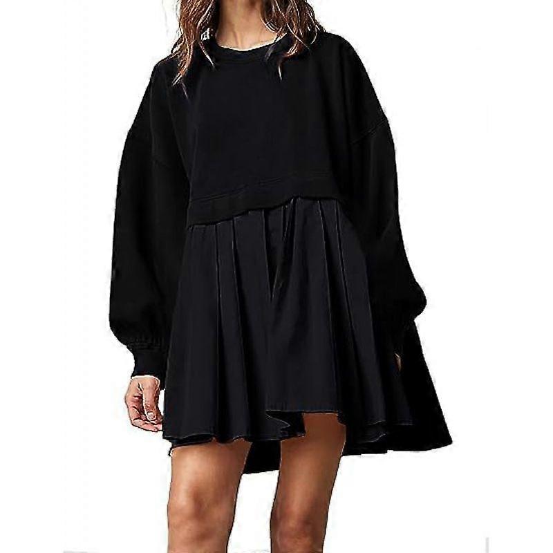 Autumn Women's Loose-Fitting A-Line Casual Dress With Collage Design In Solid Color
