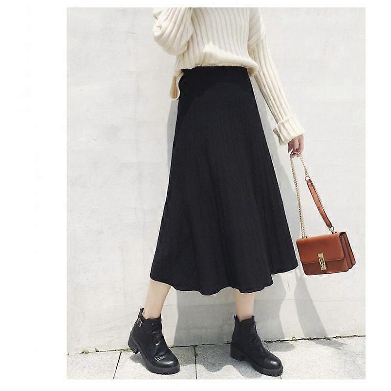 Spring And Autumn Knitted Skirt, Women's Hong Kong Style, Warm And Comfortable, Elastic Waist Skirt, Mid-Length A-Line Skirt