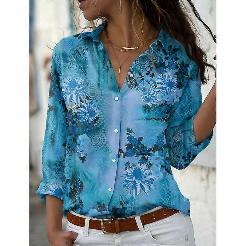 Women's Floral-Print Shirt With Long Sleeves And V-Neck