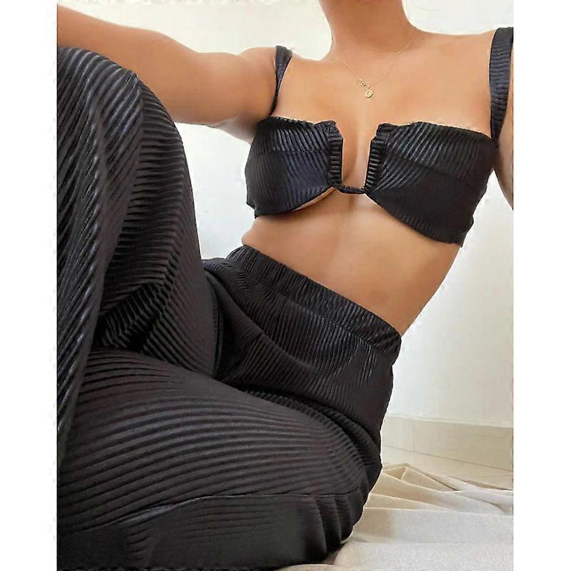 Women's Spring/Summer Two-Piece Set: Pleated Backless Vest With Straight-Leg Pants