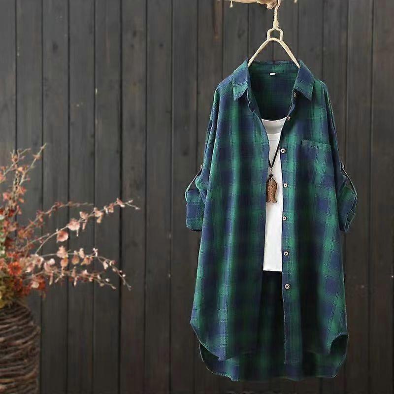 Women's Shirt With Korean-Style Loose Fit, Fashionable And Youthful Polo Collar Long-Sleeve Checkered Shirt