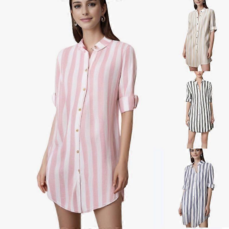 Large Quantity Of Women's Fashionable Striped Long-Sleeved Shirts, Casual Plus-Size Cotton Linen Shirts