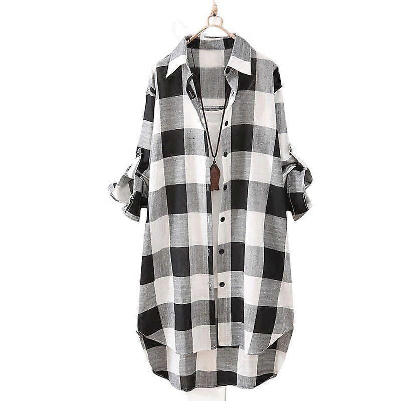 Women's Sun Protection Clothing Shirt Women's Mid-Length Plus Size Women's Loose Slimming Fashion Plaid Shirt Women's Casual Coat
