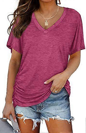 Women's Plain-Colored Short-Sleeved T-Shirt With Side Pleats And V-Neck Design