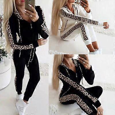 Autumn/Winter Leopard Print Long-Sleeved Hoodie With Zipper And Pants Set For Women