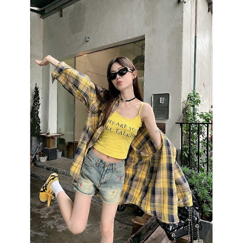 Autumn Plaid Shirt Women's Korean Version Lazy Fashion Loose Slimming Versatile Cardigan Jacket Women's Sea Salt Blue Rose