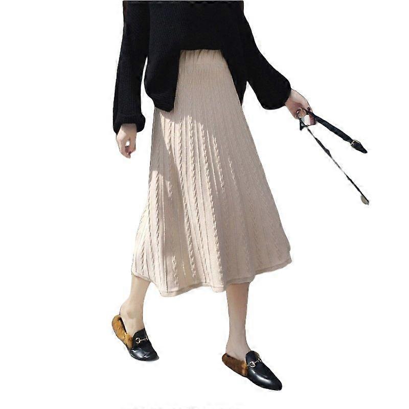 Spring And Autumn Knitted Half Skirt For Women, Hong Kong Style, Warm And Comfortable, Elastic Waist, Large Swing Skirt, Mid-Length A-Line Long Skirt