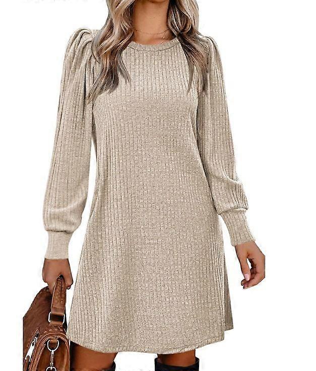 Stylish Women's Knitted Puff Sleeves Long Sleeves Fall Winter Crew Neck Casual Loose Dress With Pockets
