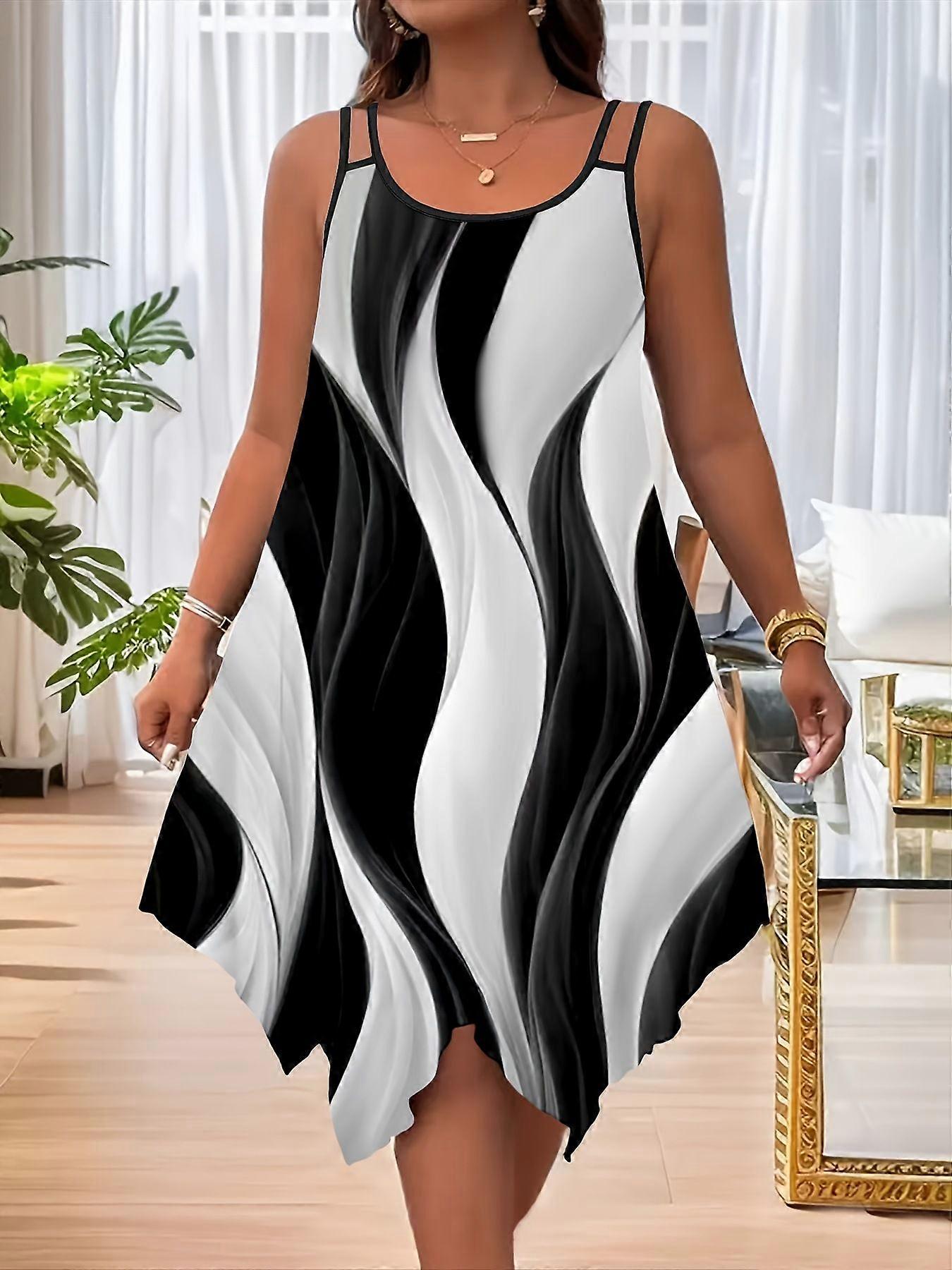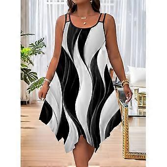 Summer Fashion Hem Double-Shoulder Strap Random Printed Women's Plus Size Dress