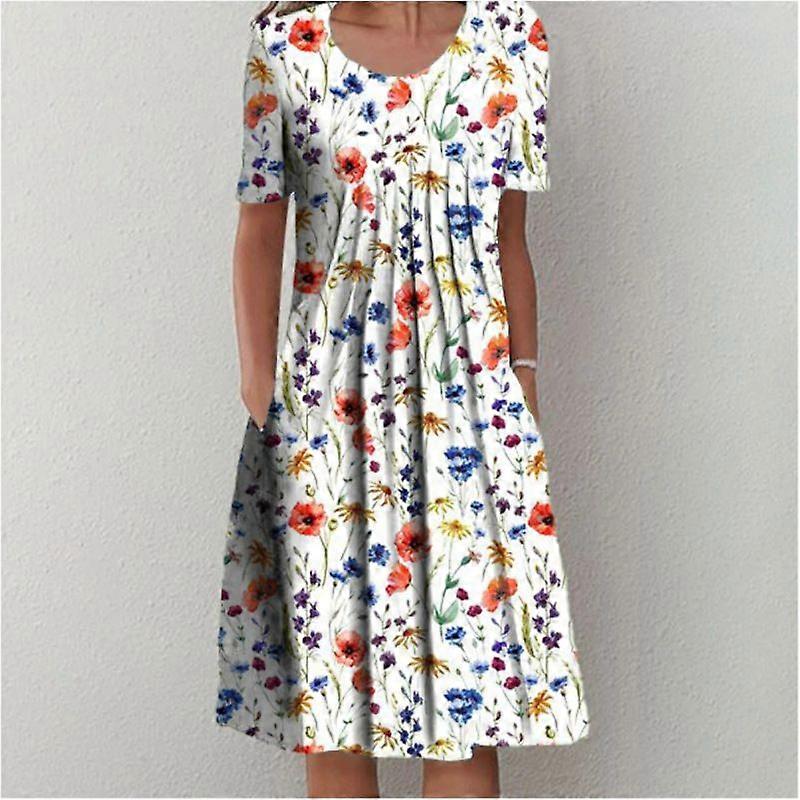 Autumn Women's Elegant Long-Sleeved Dress With Printed Round Neckline And Short Sleeves