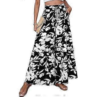 Women's Bohemian Floral Wide Leg Pants With High Waist, Summer-Style Flattering Long Pants And Pockets