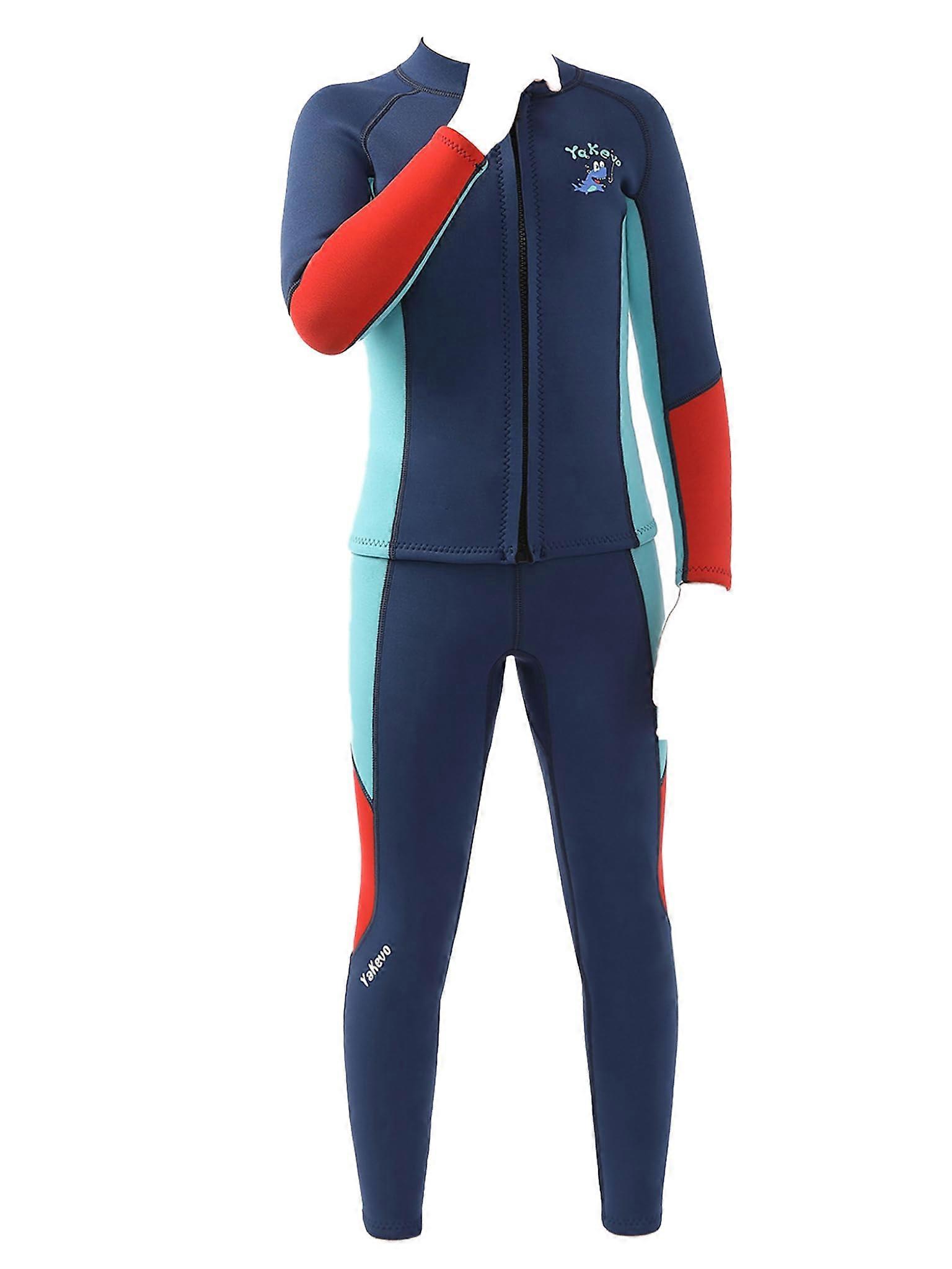 Kids Wetsuit Set 2.5mm Neoprene Thermal Long Sleeve Swimwear with Front Zipper Navy Blue 1314 Years