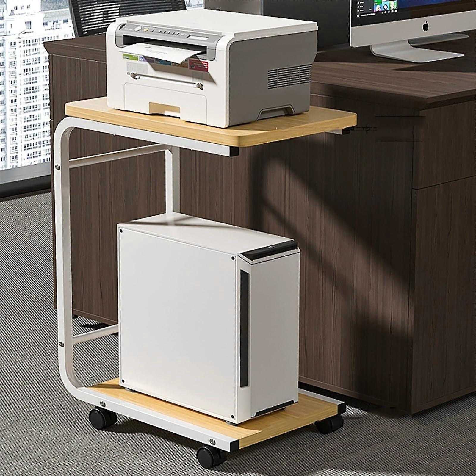 Under Desk Printer Stand with 2Tier Storage Rolling Cart for Office, Lockable Wheels, Natural Wood Finish