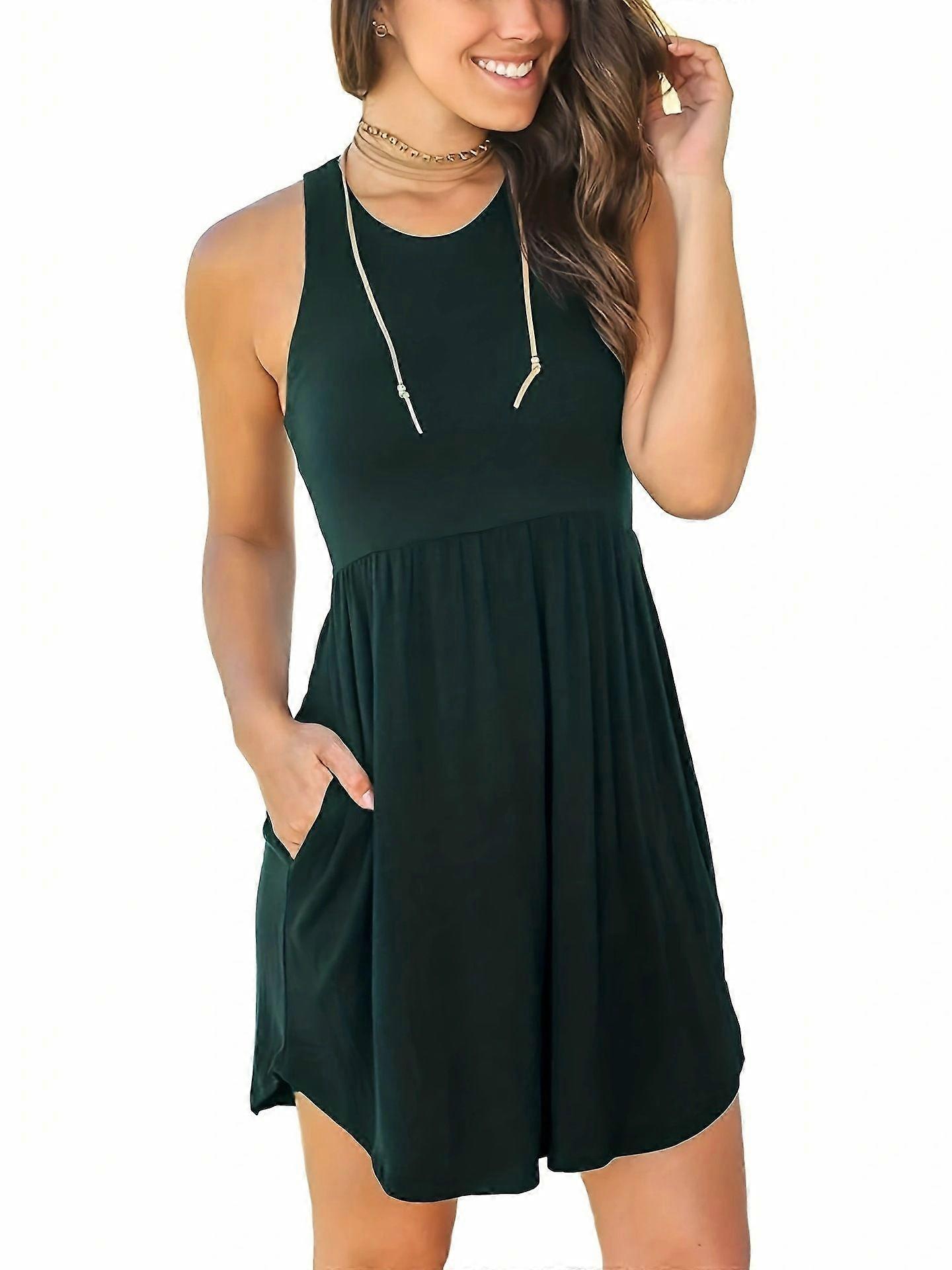 Women's Casual Comfortable Round-Neck Sleeveless Vest With Pockets In Solid Color, Large Size Dress