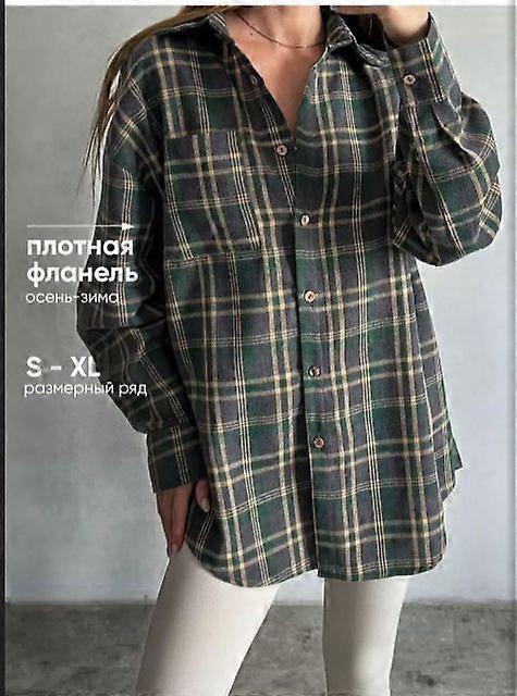 Vintage Versatile Collar Loose Shirt With Spring/Autumn Checkered Long Sleeves And Pockets For Women