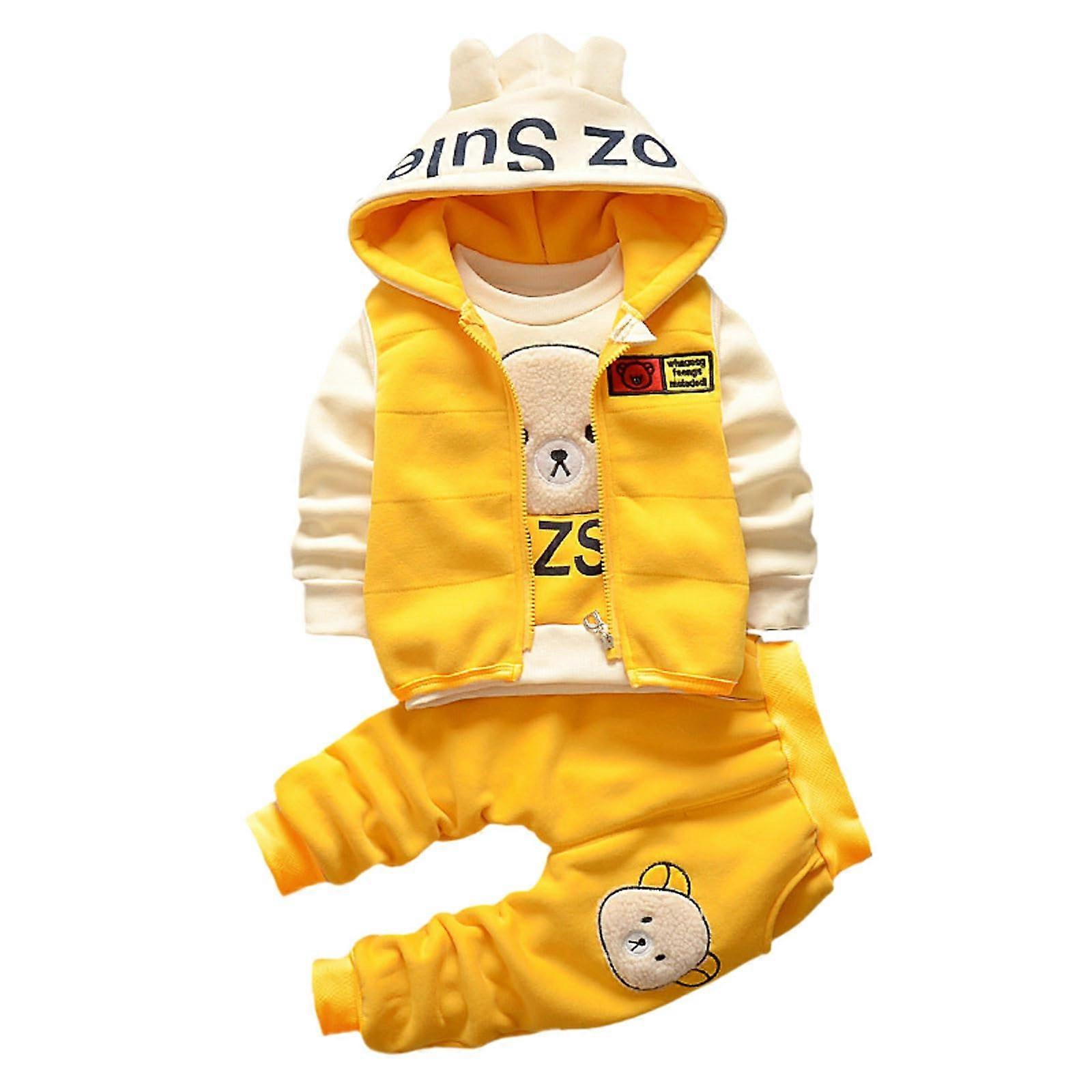 Baby Winter Outfit Warm Hooded Vest ThreePiece Set with Long Sleeve and Pants Yellow XL