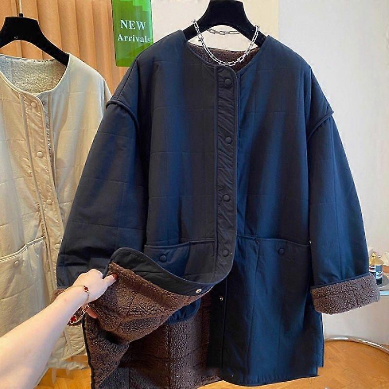 Autumn And Winter Lambswool Lining Cotton Jacket Mid-Length Loose Fleece Padded Cotton Jacket For Women