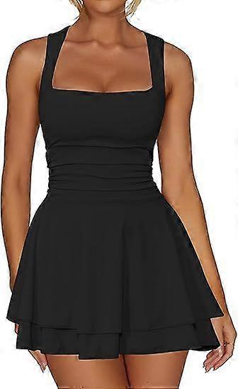 Women's Short Dress With Square Collar, Pleated Waist, And Mini Skirt