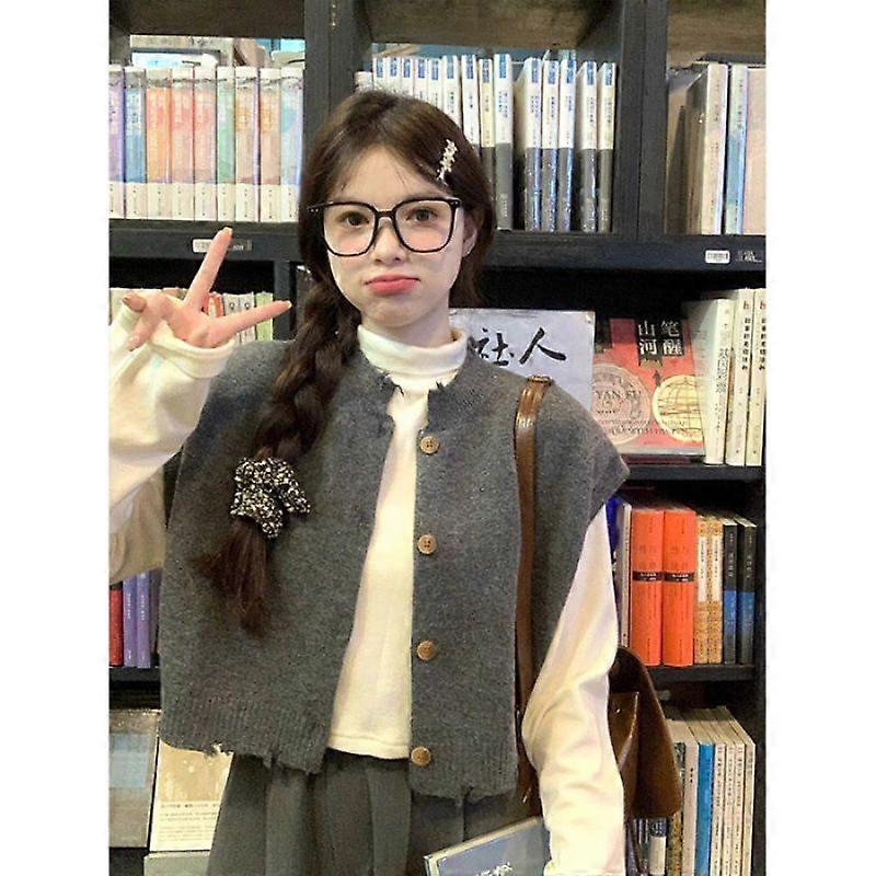 Pre-Fall Knitted Layered Vest, Women's Loose Temperament, Knitted Sweater, Cardigan, Short Outerwear, Sleeveless Vest Top