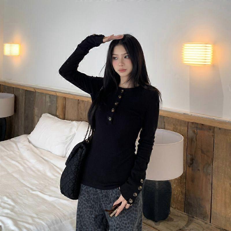 Gray Button-Down Shirt With Long Sleeves, Perfect For Autumn/Winter-A Slim-Fit Top For Women