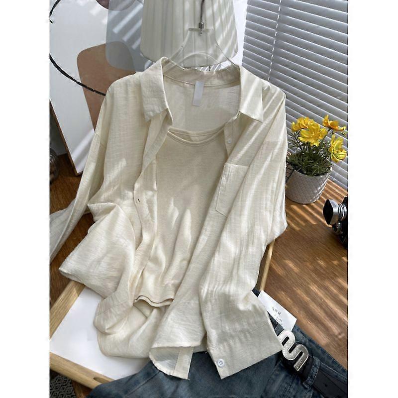 French Ice Silk Sunscreen Shirt Women's Summer Silk Thin Shirt High-End Anti-Wrinkle Long-Sleeved Sunscreen Top Two-Piece Set