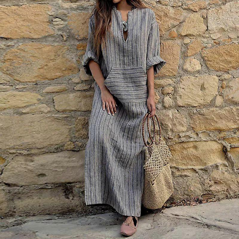 A Large Cotton And Linen Striped Dress With Loose Fit