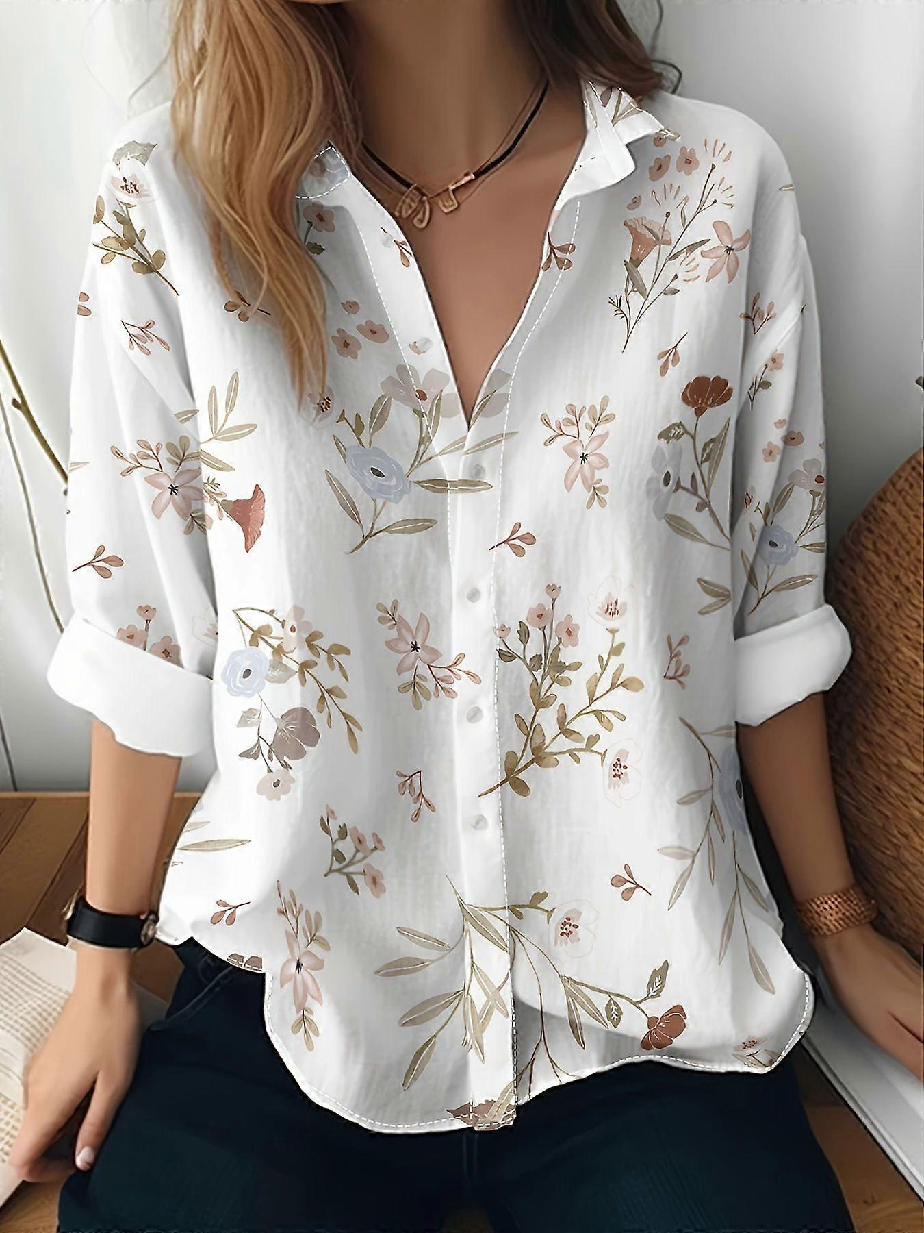 Autumn Casual Long-Sleeved Shirt With Loose Fit And Single Button, Printed Design For Women