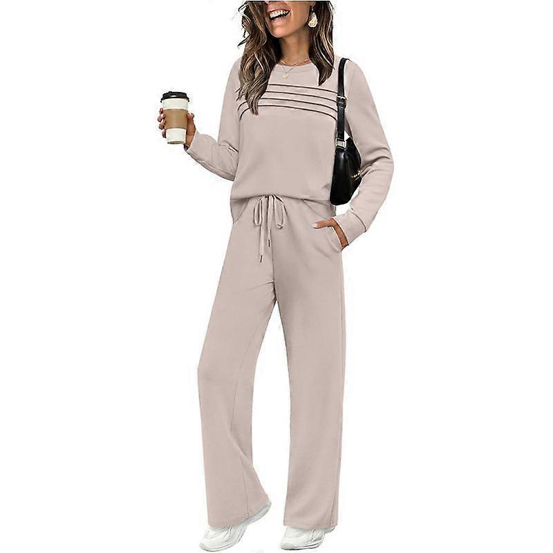 Autumn/Winter Women's Set: Long-Sleeved Round-Collared Top, Casual Loose-Fitting Waist Pants With Wide Leggings