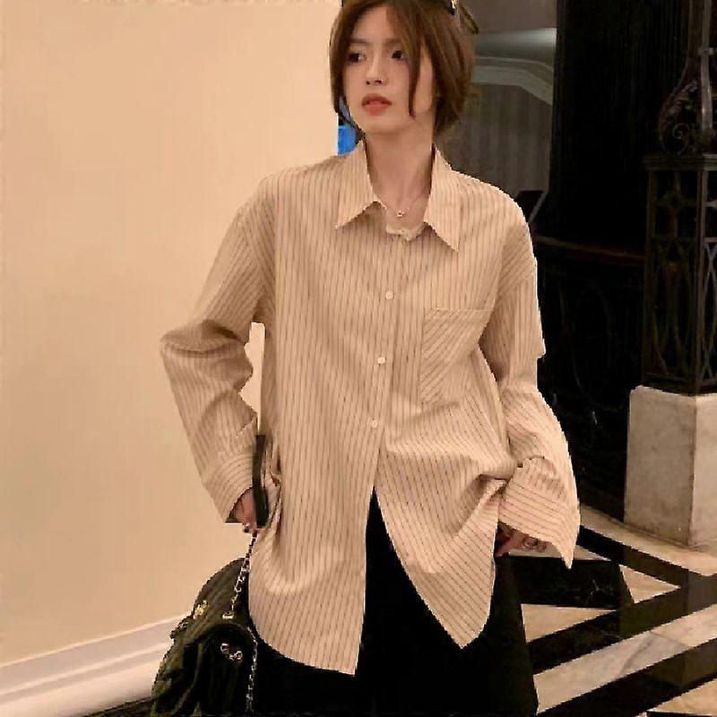 Lazy Style, Loose Long-Sleeved Striped Shirt, Women's Top, Spring And Autumn American Design, Niche And Versatile Shirt