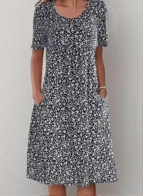Explosive French Resort Style Crew Neck Short-Sleeved Floral Midi Dress