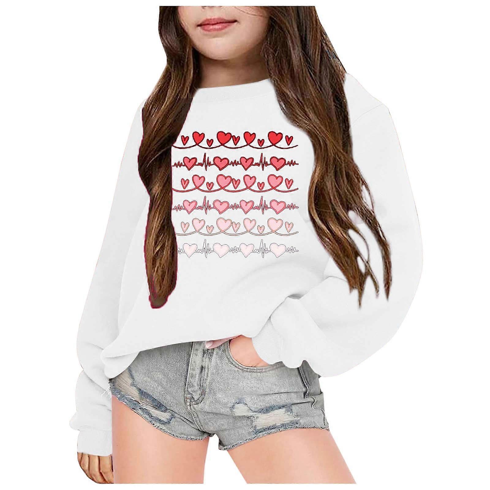 Kids Valentines Day Long Sleeve Hoodie White Crew Neck for Boys Girls 910 Years
