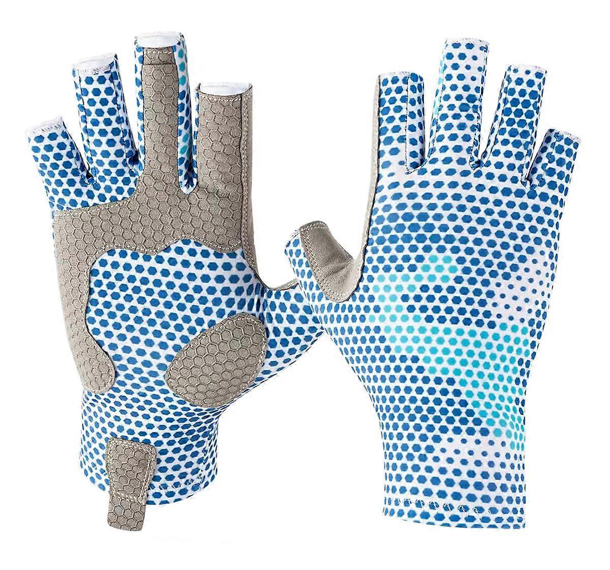 Fishing Gloves UPF 50 UV Protection Fingerless Silicone AntiSlip Palm for Sailing Kayaking M Sky Blue