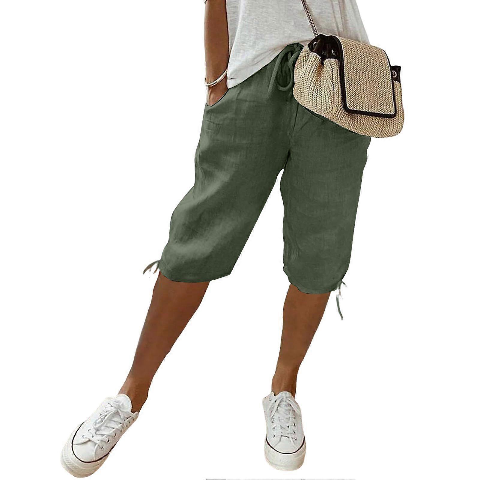 Women Shorts Elastic Mid-Waist Adjustable Drawstring Yoga Running Shorts with Pockets Solid Color