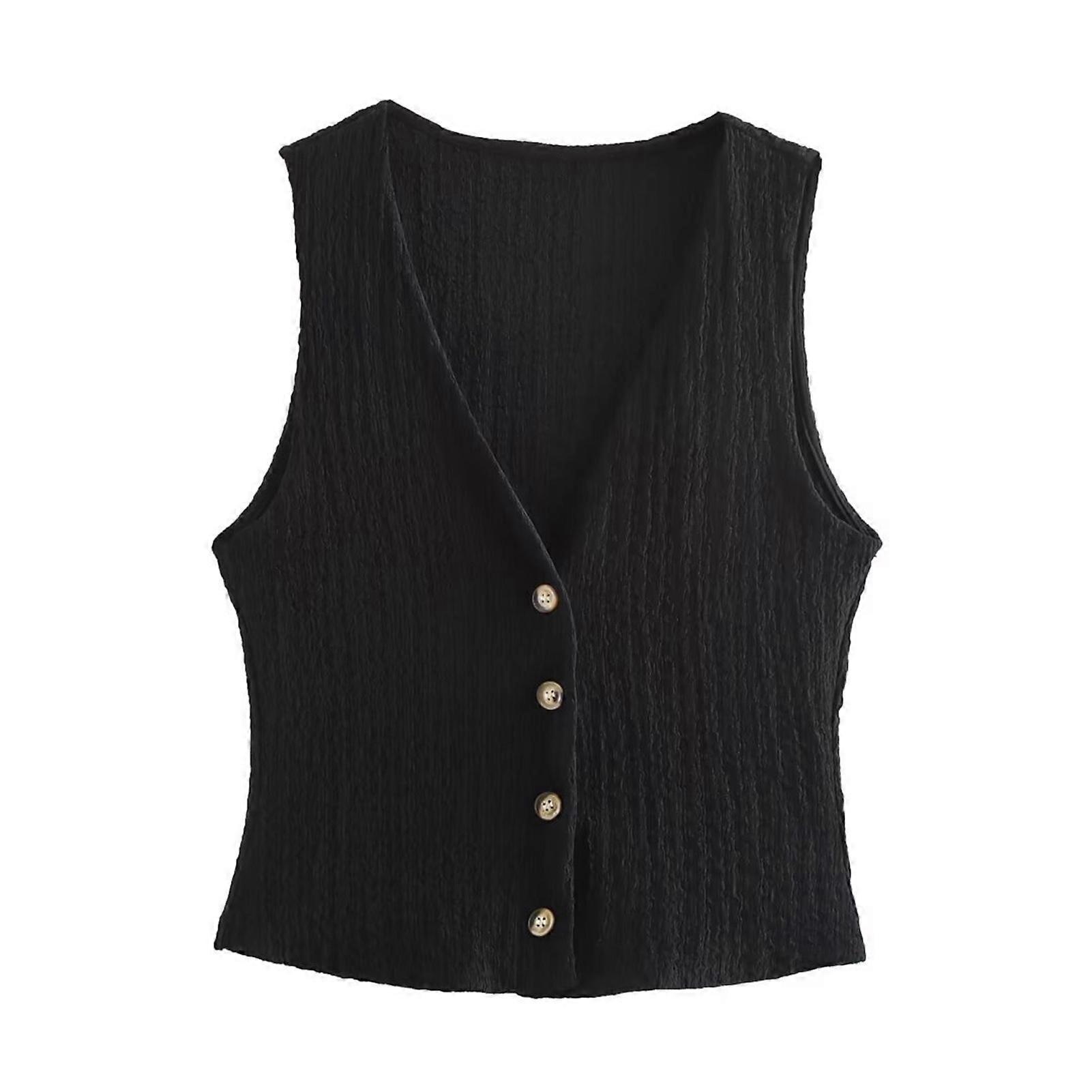 Vest Top for Women Vintage Tank Crop Top V Neck Button Down Waistcoat Retro Casual Sleeveless