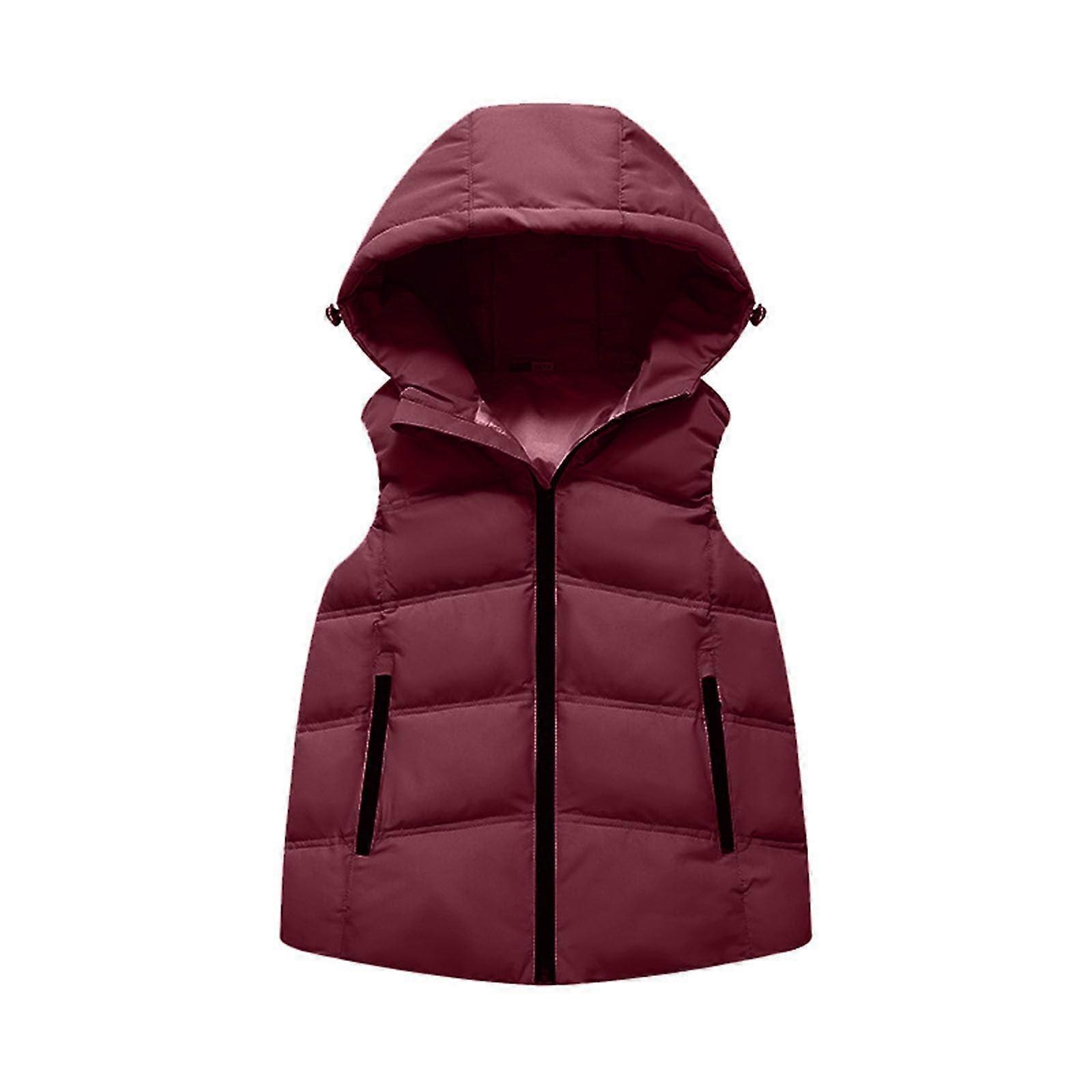 Kids Winter Vest Girls Warm Padded Hooded Short Style Zip Jacket for Toddlers 8 Years Red