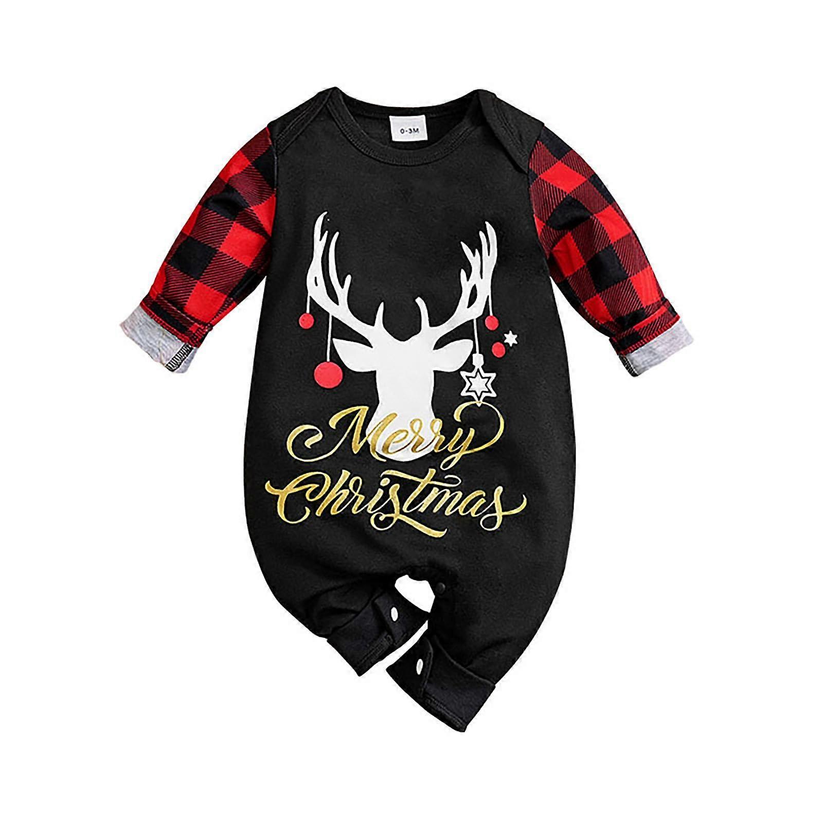 Christmas Baby Outfit Long Sleeve Romper for Newborn Girl Boy Holiday Party Soft Fabric Black 03M