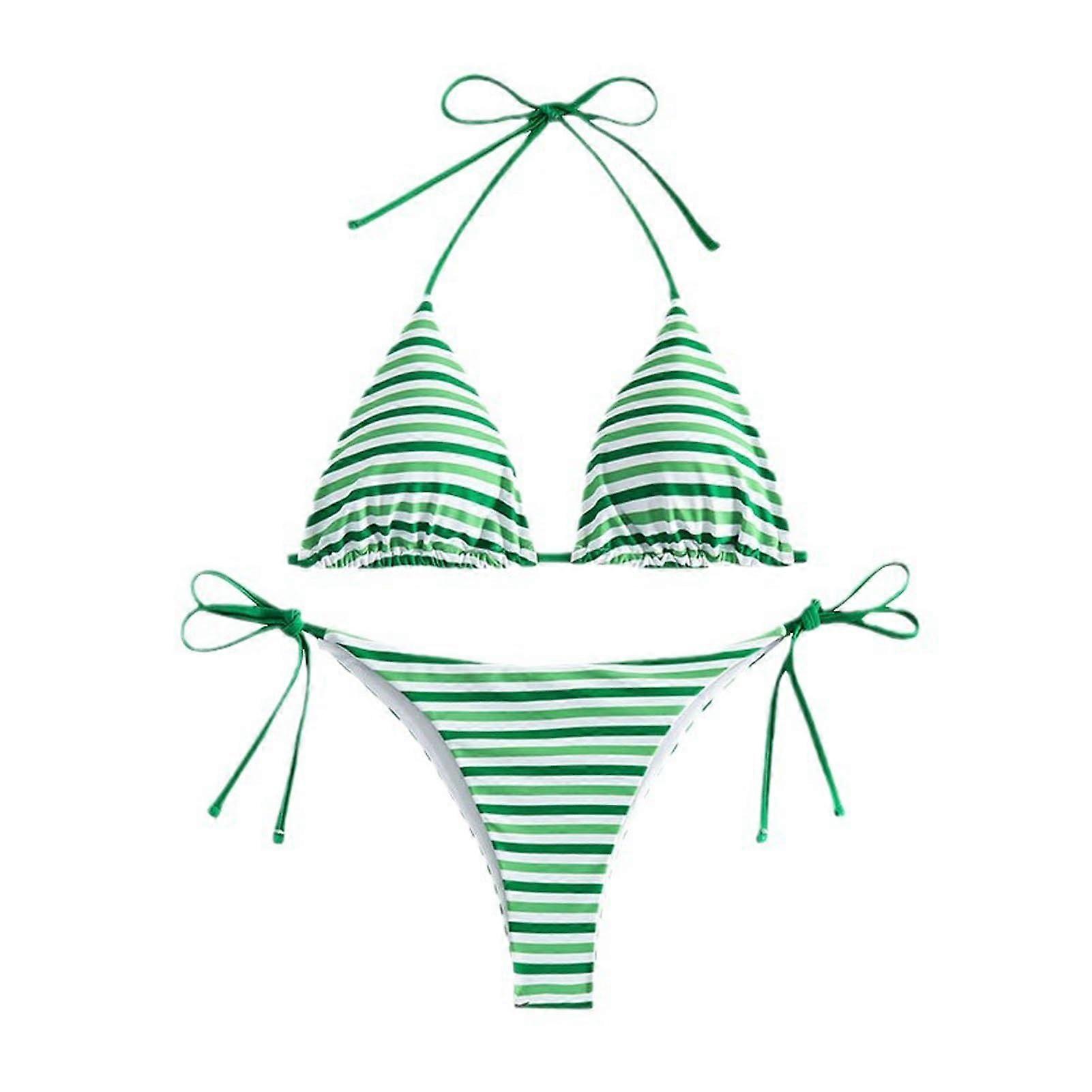 Girls Two Piece Swimsuit with Adjustable Straps Green Stripes XS for Beach and Pool