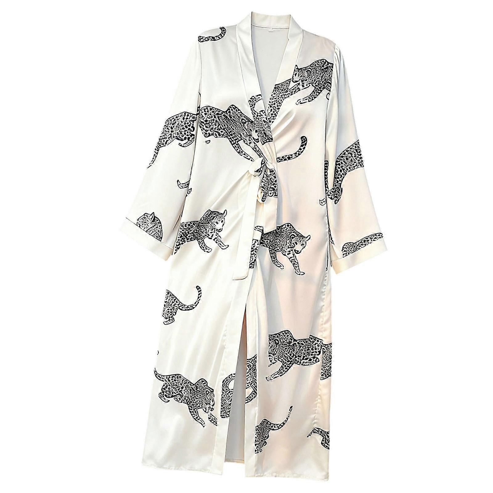 Women's Full Coverage Bathrobe in Luxurious Polyester Fabric Long Sleeves and Belt Design Thin for Relaxation White S